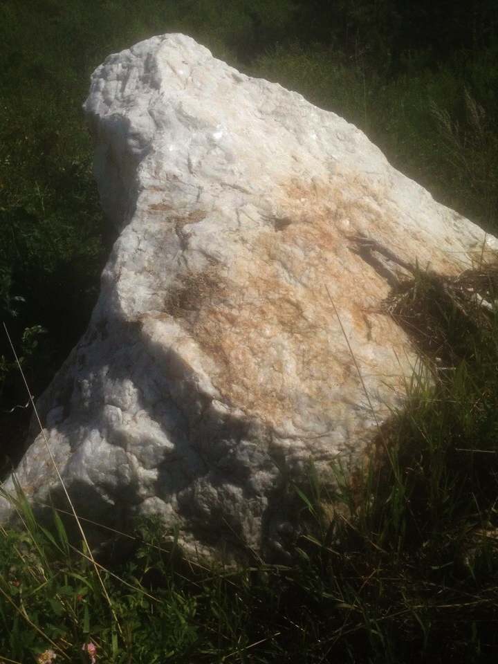 Цвет валунов: белый, при ближайшем рассмотрении видна кристаллическая структура кварца с небольшим количеством вкраплений.